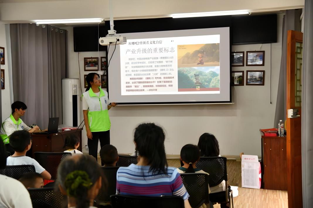 (图为青鸟实践队队员课堂中分析儿童跳舞动作)