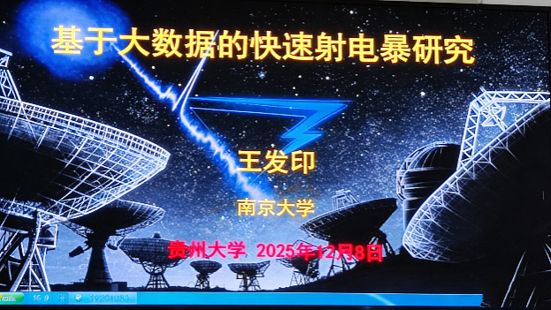 (信息与通信工程系 供稿)12月8日下午,贵州大学大数据与信息工程学院在崇理楼509会议室成功举办了一场题为 “基于大数据的快速射电暴研究” 的学术报告。本次报告特邀南京大学天文与空间科学学院教授、国家优秀青年人才王发印教授主讲,吸引了来自大数据与信息工程学院、公共大数据国家重点实验室、物理学院等单位众多师生前来聆听交流。报告由大数据与信息工程学院张利教授主持。